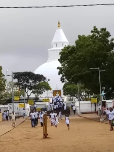 After the loss of the grand Kiri Vihara, which was among the most magnificent structures in Sri Lanka at the time, in 1731 A.D., Chandajoti Nayaka Thero, a disciple of the southern Sangha leader Vehella Dhammadinna Thero who held the Sri Pada lineage, was appointed as the leader of Kataragama. In 1760 A.D.,a small monastery was constructed near the Bodhi tree under Thero’s direction.The Buddha statue placed there led some people to call it a Perumal Kovil (Hindu Shrine).