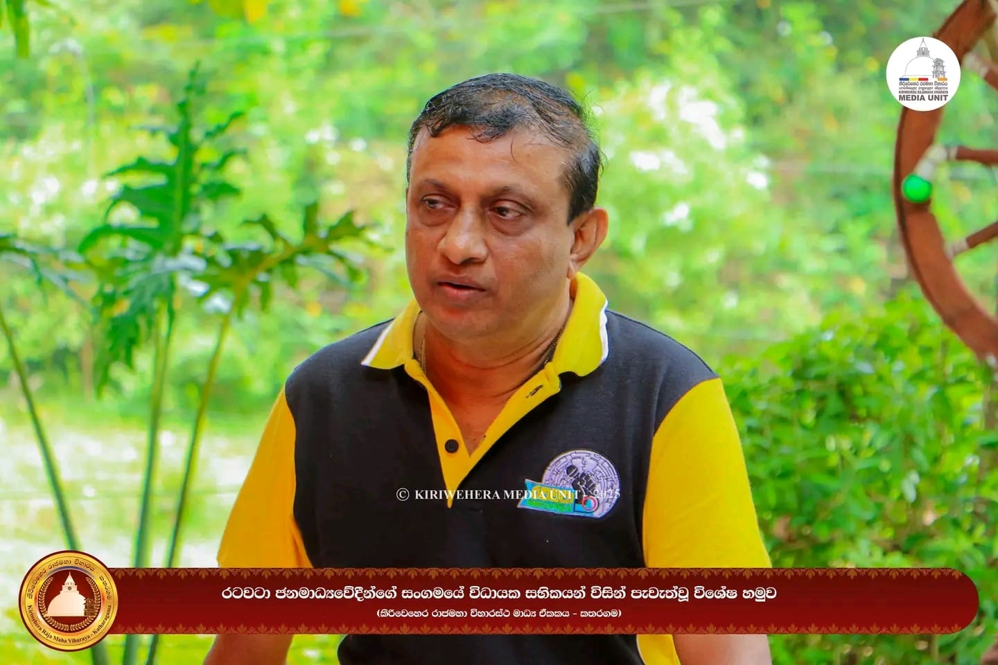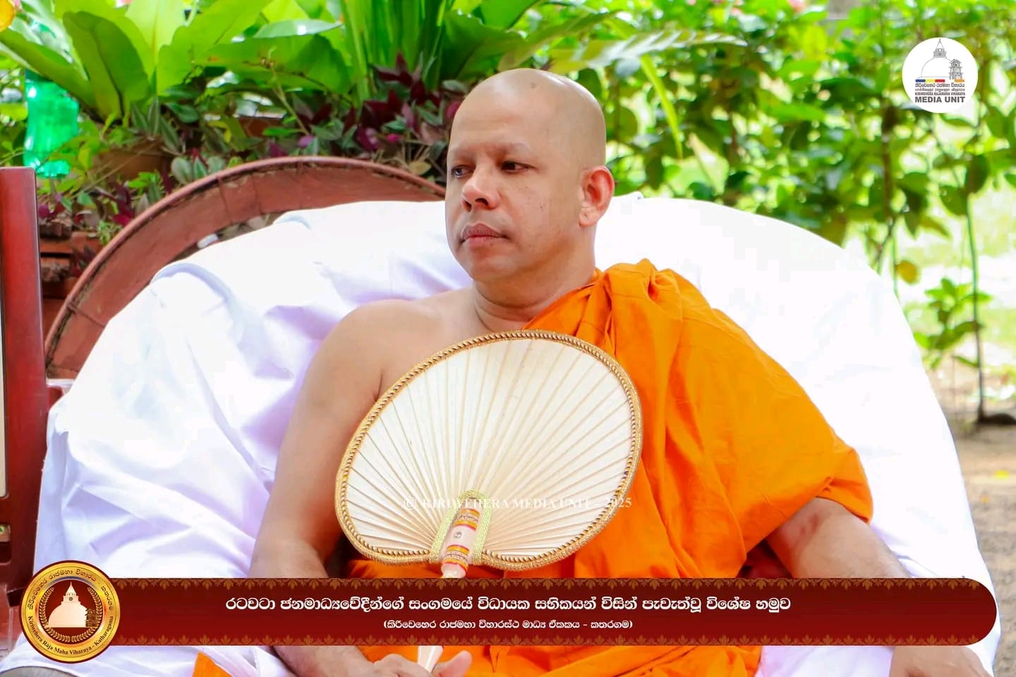 On this occasion, the Chief Sanghanayaka Thero of Ruhunu Magampattuwa and Chief Incumbent of the historic Kataragama Kirivehera Rajamaha Viharaya, Most Venerable Kobawaka Dhamminda Nayaka Thero, also participated. He blessed their future plans, appreciated the service they render to the media, and presented a commemorative plaque to them.