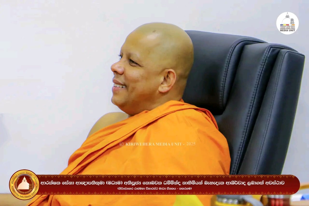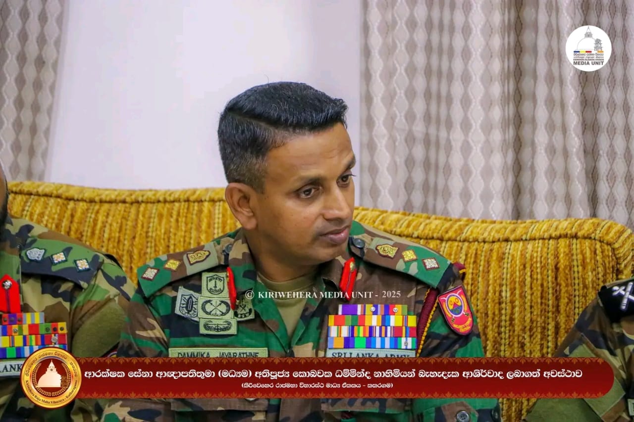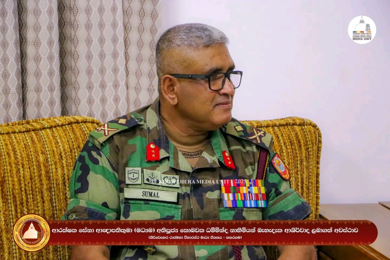 The Commander of the Security Forces (Central) paid a courtesy call on the Chief Sanghanayake of the Ruhunu Magampattuwa, Most Venerable Kobawaka Dhamminda Thero, and after receiving blessings from the Incumbent of the historic Kataragama Kirivehera Rajamaha Viharaya.